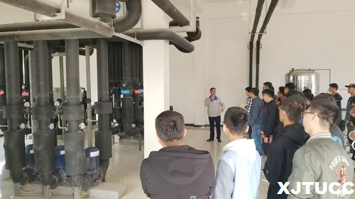 水务公司综合部负责人李康部长简单介绍了活动流程和安全事宜后,便导向同学们一起到机组水源热泵房进行重点参观学习,机组中内外循环进出水,同学们认真的听讲,了解系统给排水,过滤除污、除油净水工序。随后大家进入公司展厅进行净水的核心工艺“膜技术”的了解和学习,在中控室,同学们感受了大规模全自动化的工作流程,厂区的生化池和温室大棚展现的则是环保和能源循环利用的知识,在膜池大家看到了翻滚的污水经过浓缩脱水和消毒变成清澈的净水。最后李康部长和公司师生一起在厂区东门进行了学习总结。