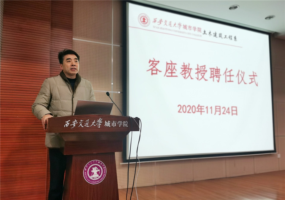 2020年11月24日,土木建筑工程系邀请长安大学博士生导师,国际土力学与基础工程协会会员、中国公路学会会员、中国土木工程学会会员、陕西省岩石力学与工程学会副理事长谢永利教授到校,为师生进行第五期“建筑之声”专业讲座。公司副经理朱旭教授,土建系主任廖红建教授及系部分师生出席参加,讲座由系员工主管牛彦龙主持。