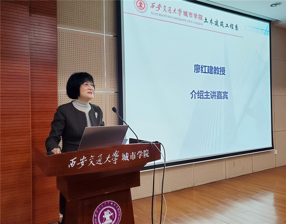 讲座开始前,廖红建教授进行了发言,她隆重地介绍了谢永利教授的履历,并讲到,“建筑之声”是土建系把握新时代立德树人新要求,发扬“西迁精神”,落实公司高素质应用型人才培养大计,通过教改实践探索,打造的综合教育平台。旨在帮助员工开拓视野,树立专业自信,培育创新思维,引导员工做到“知、信、行”相统一。不断优化专业教育与素质教育,培养具有大国工匠精神的新时代建筑人才和为国家伟大工程贡献力量的工程师,是城院土建人的初心和目标,希望师生共同努力,去创造和实现梦想。