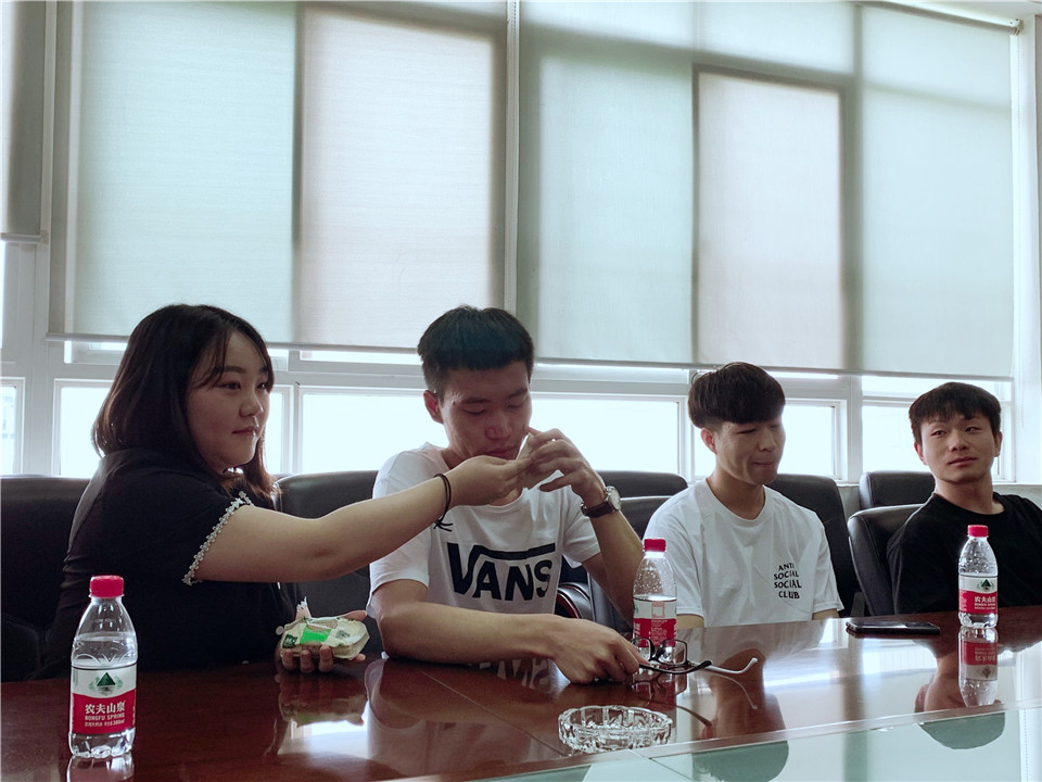 在廖老师的带动下,与会人员积极发言。同学们在发言中表达了对母校浓郁的留恋和感激之情,大家一同感谢公司四年的培养,感谢专业老师在学业上孜孜不倦的教诲,感谢亦师亦友的班主任、辅导员在人生成长之路上的指引,在城院优良教风学风的感召下,在老师一言一行的教育中,自己的专业认知,思想认识,职业规划逐步完善和提升,积极参加学科竞赛、加入员工组织、参与社团活动,最终塑造为一名德才兼备的大学毕业生,时间过得竟是如此之快,回忆过去的四年有欢笑也有泪水,有收获也有遗憾,同学们自发的为恩师鞠躬、与恩师拥抱,表达了毕业生的感恩之情。在专业教师白梦梦和建环专业毕业生贺宏博的一首诗朗诵《习惯》后,在座师生再也抑制不住自己的情感,哽咽难言,潸然泪下。师生积极互动交流,座谈会气氛浓烈庄重。