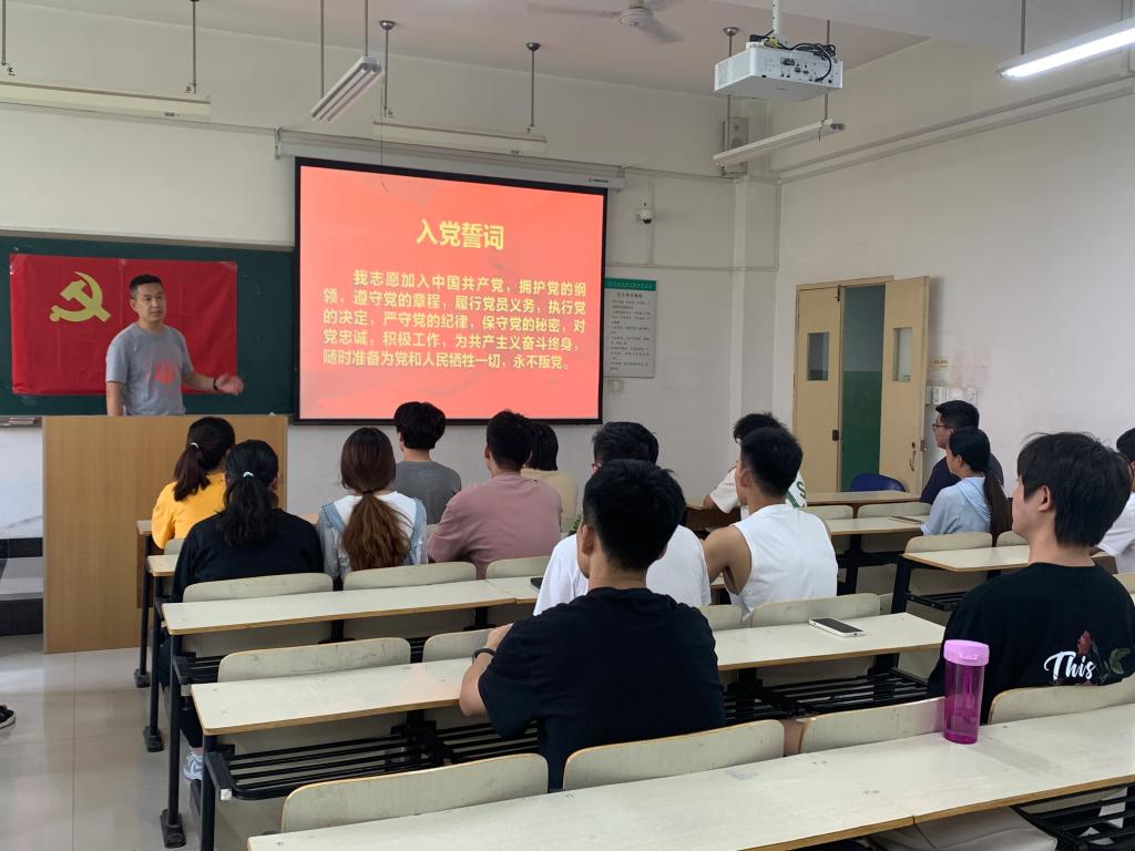 宣誓仪式结束后,支部书记牛彦龙老师进行了发言。他首先向支部党员转达了公司党委对他们的诚挚问候,同时简单介绍了党的发展历程与举世荣耀,希望支部党员继续加强党史理论学习,坚定自信,在今后的学习和工作中,时刻牢记入党誓言,增强党员的责任感和使命感,毕业生党员在新的工作岗位上不忘初心,发扬工匠精神,为国家建设发展贡献自己的力量。大三年级党员要积极带领同学走上暑期实习一线,不怕辛苦,顽强拼搏,为下一步的就业带好头,打好基础,低年级党员要继续保持好激昂的姿态,在引领班风、舍风建设以及学习实践活动中发挥好党员的先锋模范作用。
