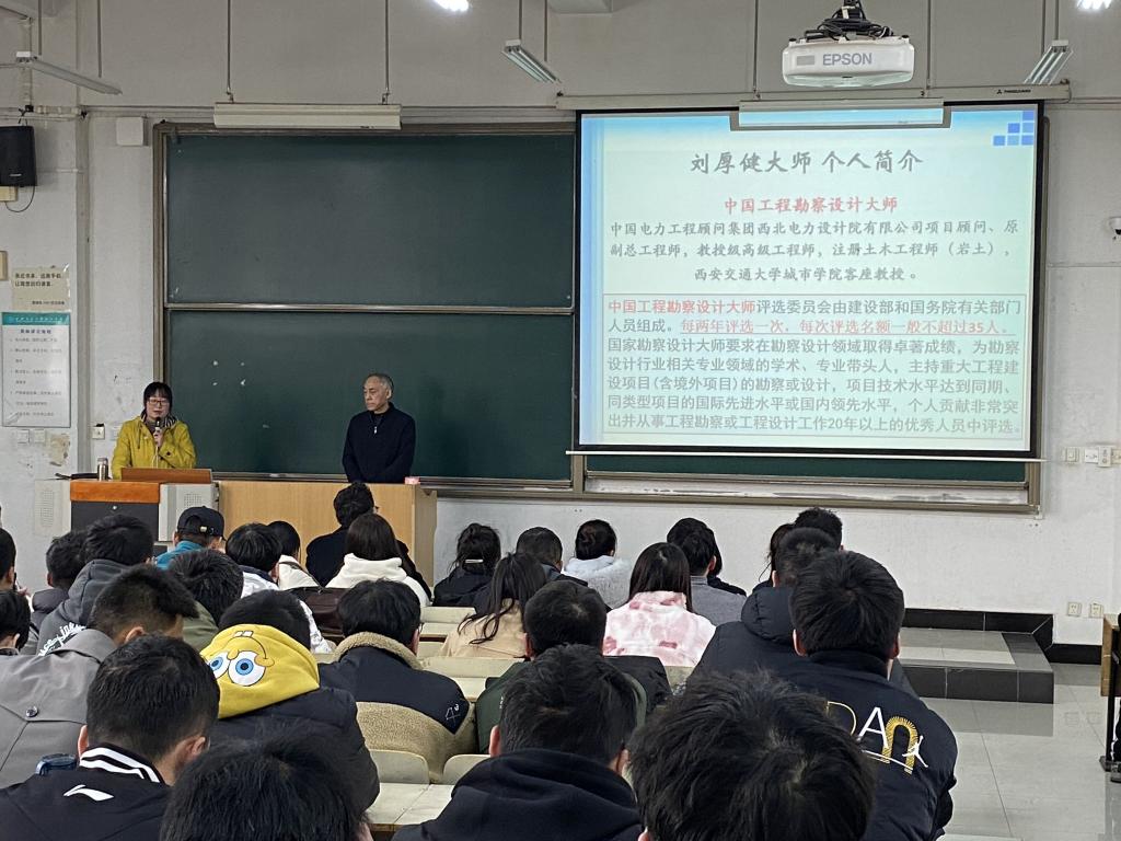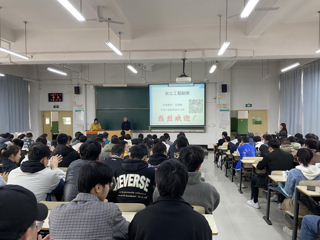 为更好提升专业人才培养质量,推进学科交叉融合创新,深化新时代工程应用型人才培养内涵,土建系在2020版培养方案中新增交叉学科选修课程《岩土工程勘察》,邀请全国工程勘察大师、教授级高级工程师、bevictor伟德客座教授刘厚健作为主讲教师。 在课堂中,刘教授首先以西安城墙、青藏铁路、秦岭隧道和上海金融中心等中国著名工程为例,讲述了土木工程在社会发展进程中凸显的重要地位和意义,在课程讲授中向员工传达作为一名土木工程师必备的专业素养,向员工展示了“课堂所学”与“工作所用”之间的联系,指出专业课程设置是多年的积累和社会反馈。刘教授的课程深入浅出,理论结合实际,将岩土工程勘察和土木工程建设有机融合,在授课过程中,刘教授还勉励员工认真学习专业知识,励志成才,员工认真听讲,不时为刘教授送上热烈的掌声。