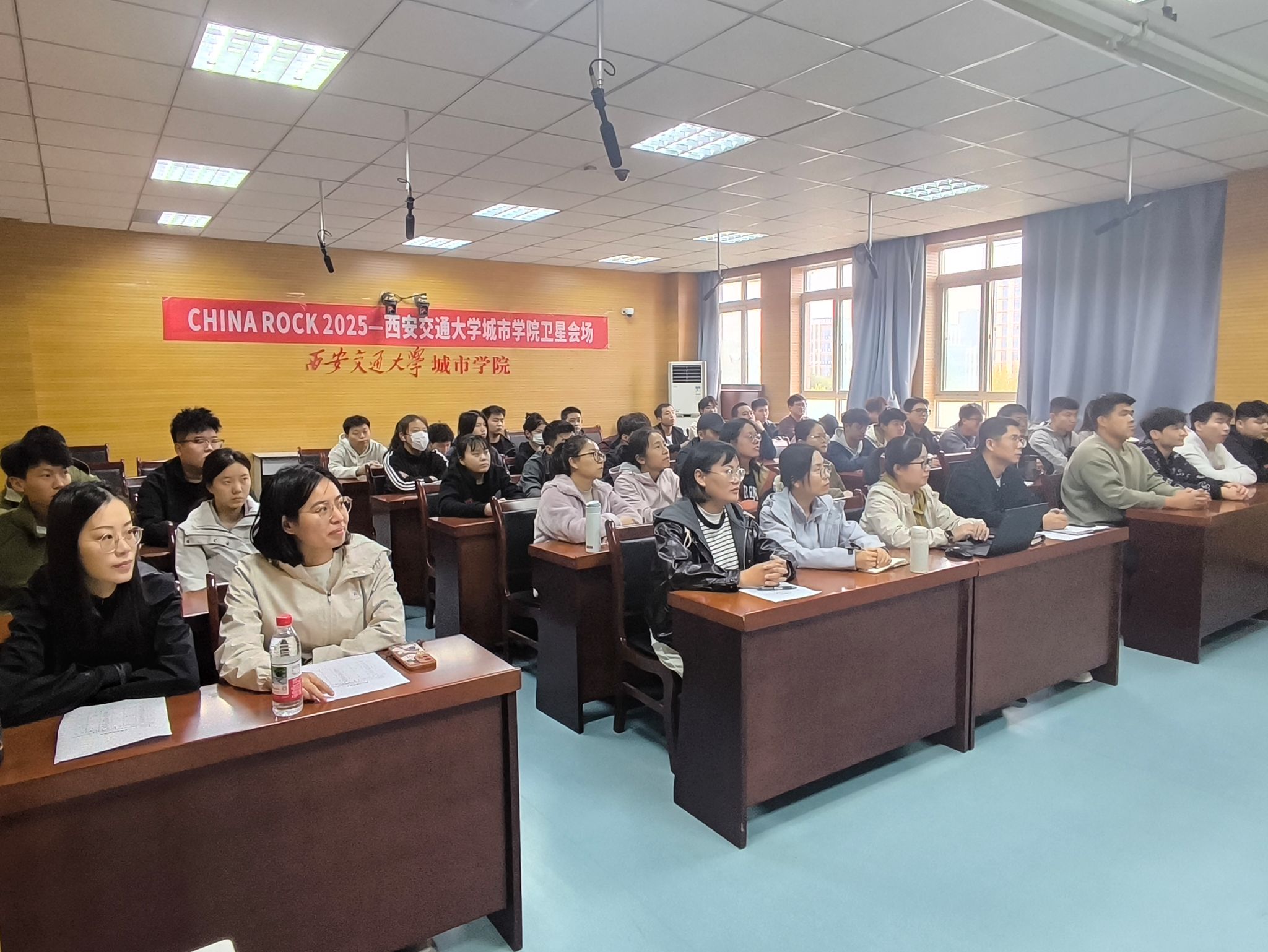本次年会以“AI赋能岩石力学与工程”为主题,采用“主会场+中心会场+卫星会场”三级联动模式,在全国设置300余个卫星会场,旨在覆盖更广泛的受众群体,提升学术交流的效果和影响力。会议期间,师生通过线上直播全程参与主会议,系统学习了智能岩体建模、地质灾害AI预警等前沿技术研究成果,深入探讨了人工智能与传统土木工程的融合路径。