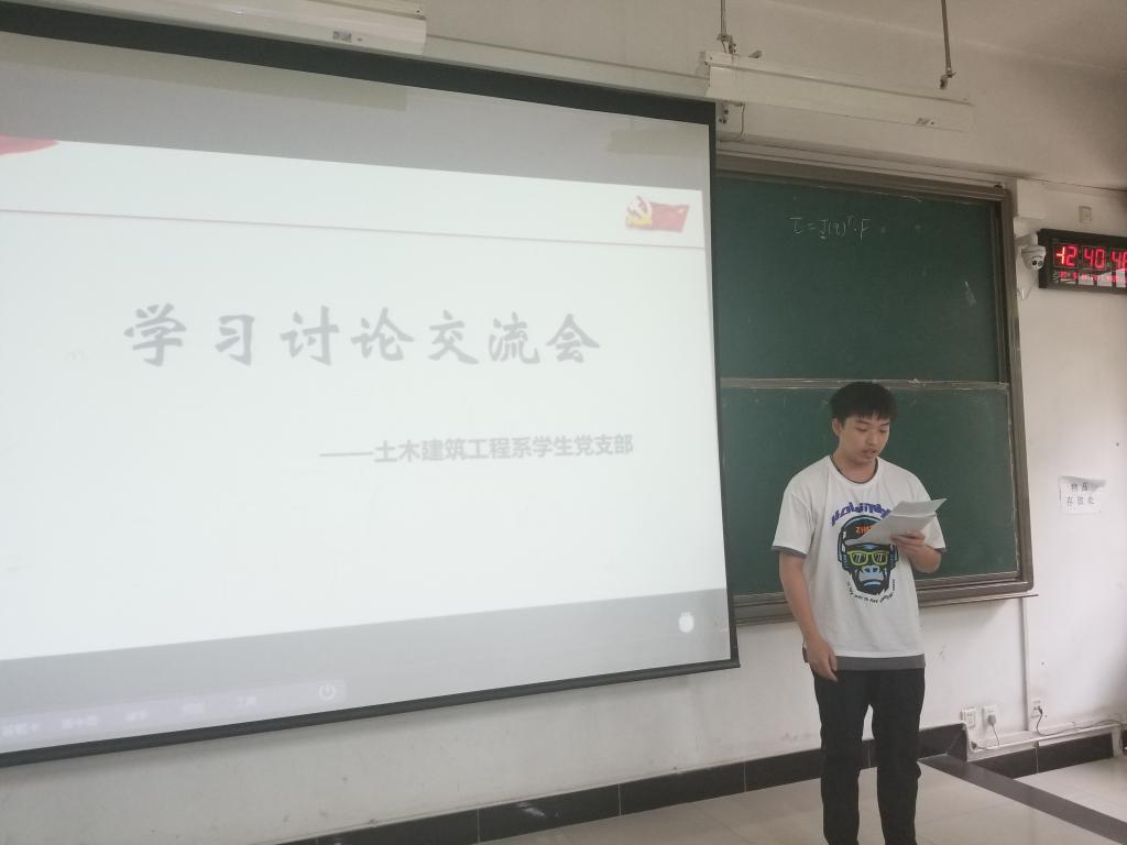 6月11日中午,土建系员工党支部在D109教室举行学习讨论会,支部书记牛彦龙老师、组织委员周学斌以及全系三十二期22名入党积极分子和发展对象共同参加了学习讨论,会议由周学斌同学主持。