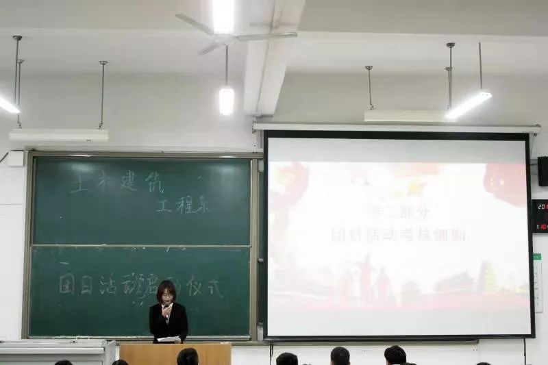 活动开始主持人张诗羿同学介绍了参加本次启动仪式的主要嘉宾,土木建筑工程系党支部书记康彦青老师,土木建筑工程系员工主管牛彦龙老师, 土木建筑工程系团工委书记吴丹老师 , 土木建筑工程系团工委副书记刘峻铭出席参加。