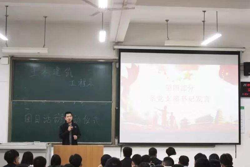 接下来土建系导员牛彦龙老师上台讲话,牛老师讲到团日活动是围绕建国70周年,不忘初心为大主题,希望各班能够参透本次活动的主题,认真学习,通过团支部,班委会策划有意义的活动。在组织过程中应该高效,不要假大空,不能流于形式。希望大家能够共同进步,取得收获。