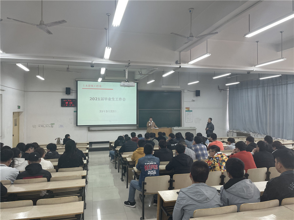 根据2021届毕业生工作需要,土建系于3月22日在E400组织召开了2021届毕业生工作阶段总结暨部署会议,系员工工作负责人牛彦龙,毕业班班主任高英、张瑜与全体毕业生共同参加了会议。