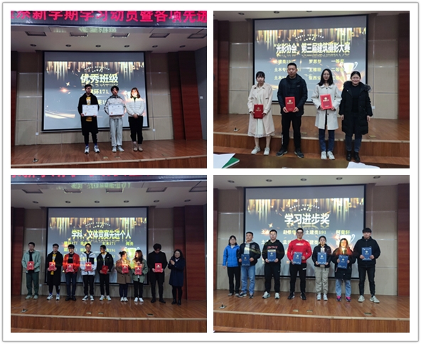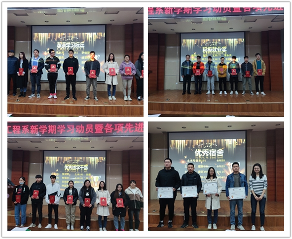 首先,土建系对上学期在学习成绩、学业帮扶、就业创新、学科竞赛、社会活动等方面取得优异成绩的员工先进个人和集体进行表彰奖励。系主任廖红建教授、主任助理康彦青副教授、主任助理黎莹等依次为获得表彰的同学颁发荣誉证书,以资鼓励。随后,主任助理康彦青副教授进行了“新学期、新征程”学习动员讲话,他从基础课和专业课两方面对上学期的成绩做出详细分析,并介绍了本学期系里开展的学风建设和学业提升系列活动安排,着重强调了公共基础课和专业基础课学习的重要性,以及全系师生在新学期促学、勤学、帮学活动中的责任和目标,动员全系师生把握机遇,迎难而上,勇创佳绩。