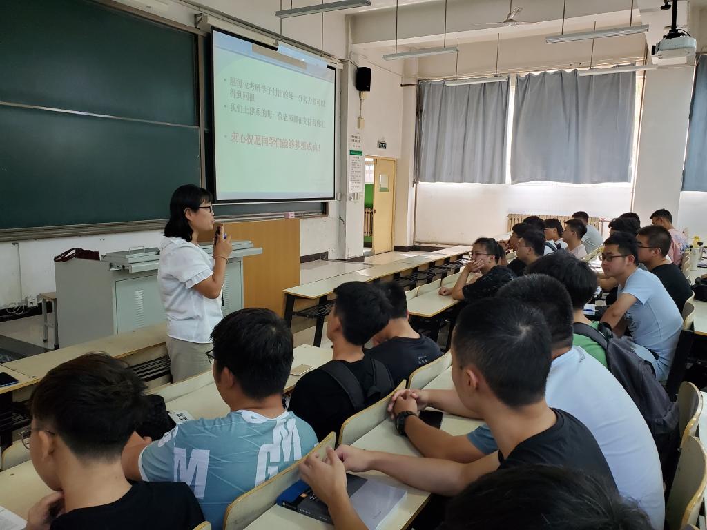 康彦青在大会上作了动员发言,她指出,土建系毕业生在历年研究生考试中取得了相对较好的成绩,但仍有较大的提升空间,她详细地分析总结了近两年备考失败的毕业生存在的问题以及可以改进提高成绩的措施,以及各专业的考试详解,并结合公司有关工作精神,把土建系针对今后毕业生考研制定的各项指导帮扶服务工作为大家作了详细的介绍,引导同学们树立合理目标,积极备考。随后,郭秀芹老师结合自身教学和前期对员工指导案例,为同学加油鼓劲。牛彦龙老师也结合员工的职业规划以及当前社会的就业新形势发言,要求同学们进入高年级应即刻合理调整和规划学业、职业目标,树立远大目标,并付之于实际行动中,不负大好青春年华。