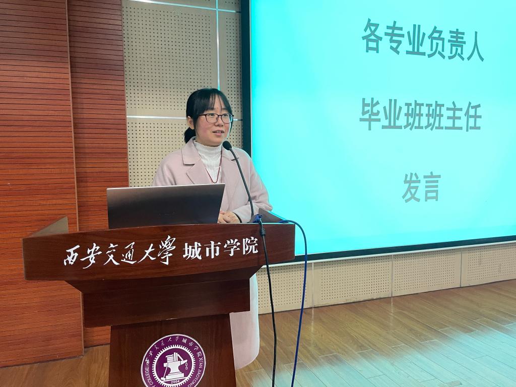 接着,康彦青副教授与黎莹副教授分别进行了就业动员讲话。康老师指出,建筑类相关专业在当前仍有就业优势,且就业面较为广泛,从专业角度为大家指出了多种就业渠道和领域,鼓励大家把握好核心竞争力,确定职业理想,了解职位要求,抓住秋招机遇,积极参与各类线下和线上应聘活动,找到自己满意的工作。黎老师则结合个人经历与实际案例,重点强调了符合实际的职业规划在个人整个职业发展期的重要作用,她指出在职业发展初期应以经验积累和能力提升为主,不应过度追求单位的知名度和影响力,老员工应结合当前的实际情况,先就业,再择业,选择合适的平台不断加强专业技能的提升,积极考取专业技能资格证书,为长远的发展奠定坚实的基础。最后,毕业班班主任老师们与大家进行了互动交流,鼓励同学们树立自信,及时分析就业形势和政策,积极响应号召,师生协同努力,早日落实就业去向。