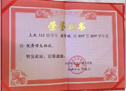 2018-2019学年,荣获国家奖学金。