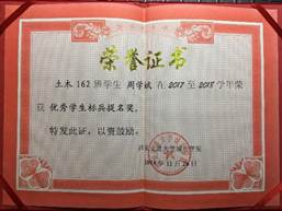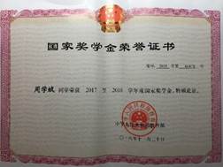 2017-2018学年,荣获国家奖学金。